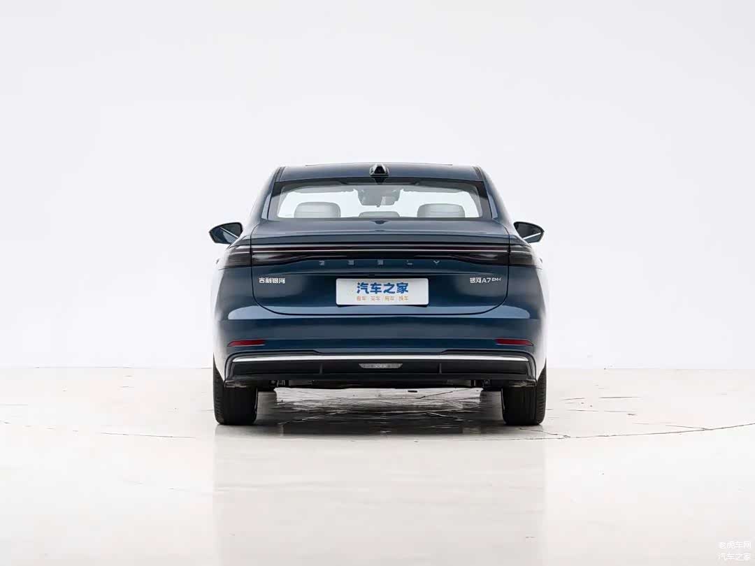 车身侧面,新车采用双腰线设计,拥有修长的车身以及溜背式造型,上方腰线从车头贯穿至车尾,搭配密辐式轮圈以及车窗边缘亮黑的饰条,有着不错的精致感。尺寸方面,根据申报信息,新车长宽高分别为4918/1905/1495mm,轴距为2845mm,定位为中型轿车。车尾部分,吉利银河A7 EM-i采用较多平直的设计元素,整体视觉效果相对简洁,贯穿式尾灯的设计与前灯组形成呼应,配合尾厢上方微微翘起的小鸭尾设计,整体有着不错的视觉效果。