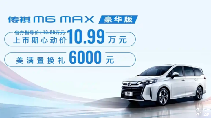 近日,广汽传祺 M6 MAX 豪华版正式上市,以 10.99 万起的心动价格,为家用 MPV 市场注入新活力。作为传祺旗下热门车型的升级版本,新车在外观、内饰和动力方面均有亮点,尤其是前脸设计更显霸气,成为众多家庭用户的关注焦点。
