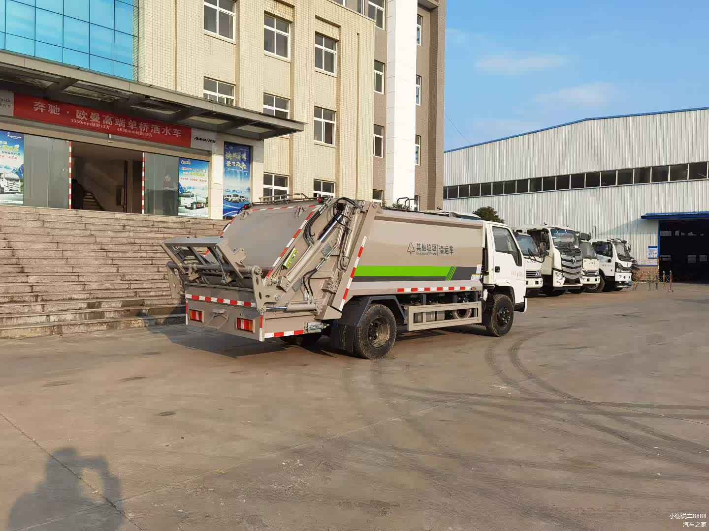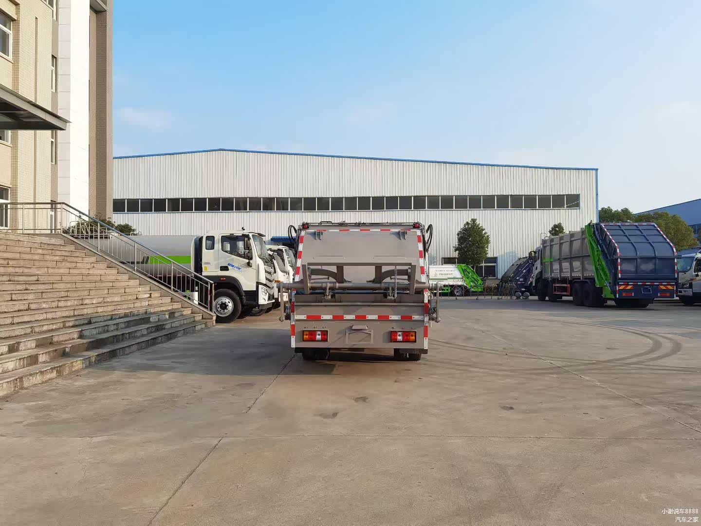【上装标配】:弧形箱体,箱体容积7立方,材质边3mm底4mm,福建山友液压油缸,铸铁泵,中梅多路阀,带气动三元件,滑板油缸外置,湖南福力CAN总线电控,带无线遥控器,背压阀,一体式滑块,液压油箱带清理孔,箱体做喷砂处理,环氧富锌防锈底漆,标配翻转架可挂2个240升国标垃圾桶。选装三角斗装置,选装侧污水箱,选装防尘盖,其余厂家标配。