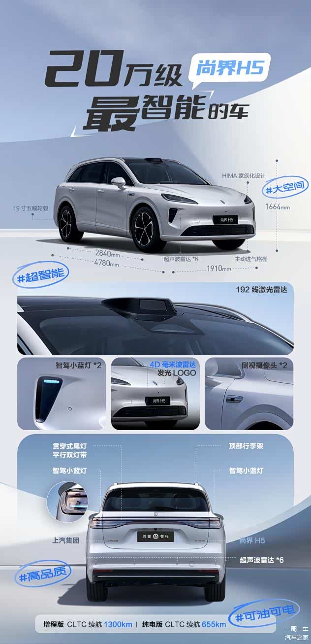 在尚界H5之前,要在20万级市场中找一台不偏科的车型几乎是不可能的事,受限于价格,消费者或多或少都需要有所取舍。而尚界H5的到来,或直