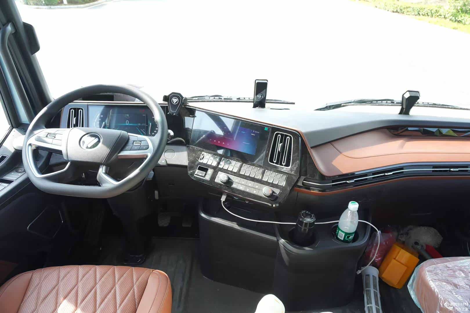 底盘配置:欧曼银河3平地板驾驶室,旋钮式变速箱,手动天窗,电动翻转,有感应雨刮,凝夜蓝金属漆,7寸液晶组合仪表+MP5,10寸大屏+四方位影像,275/80R22.5 18PR-全钢车轮轮胎,600L铝油箱,9t(368)后桥,速比:3.7(自调臂ABS),135Ah铅酸电池+无电压转换器,