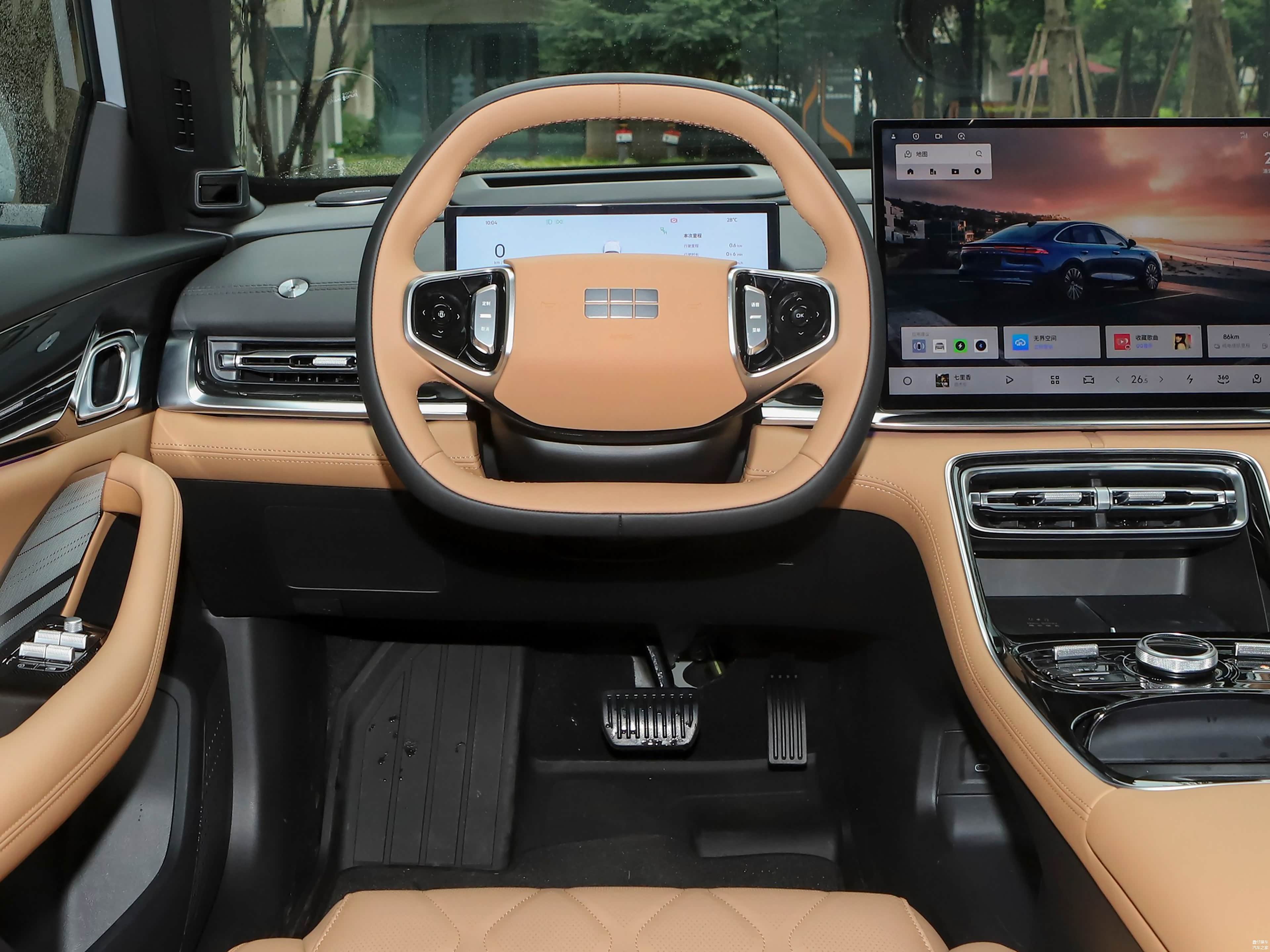 内饰部分延续银河系列近期的设计语言,采用双辐平底方向盘搭配全液晶仪表,同时配备15.4英寸2.5K分辨率的中控屏,并搭载最新银河Flyme Auto座舱系统。配合16.6英寸W-HUD抬头显示系统,能够实现导航、限速提醒与辅助驾驶状态的多层信息同步投射,降低驾驶视线偏移频率。