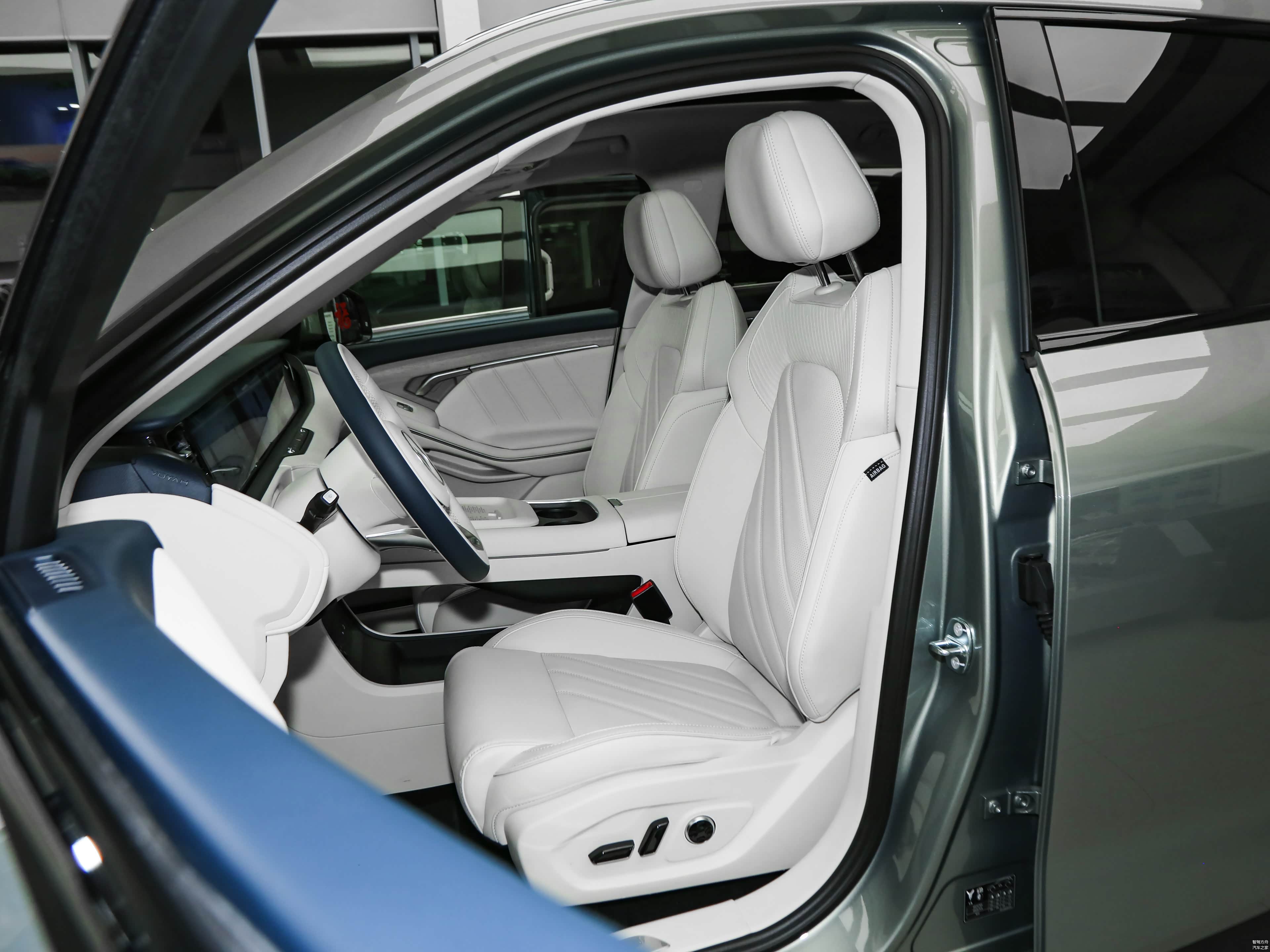 中控台下方设有16.3L超大镂空储物空间,内置柔光照明灯,方便放置手提包、平板电脑等物品,取用便捷。智能香氛系统提供多种香型选择,可根据个人喜好调节浓度,让车内始终保持清新宜人的气息。车顶采用1.78㎡全景天幕,采光面积充足,让车内空间显得更加通透开阔,搭配可电动调节的遮阳帘,能有效隔绝99%以上的紫外线,既保证了采光效果,又避免了阳光直射带来的不适。四门电吸门设计,关门时无需用力,轻轻一带便能自动吸合,不仅降低了关门噪音,更彰显出车辆的豪华质感。