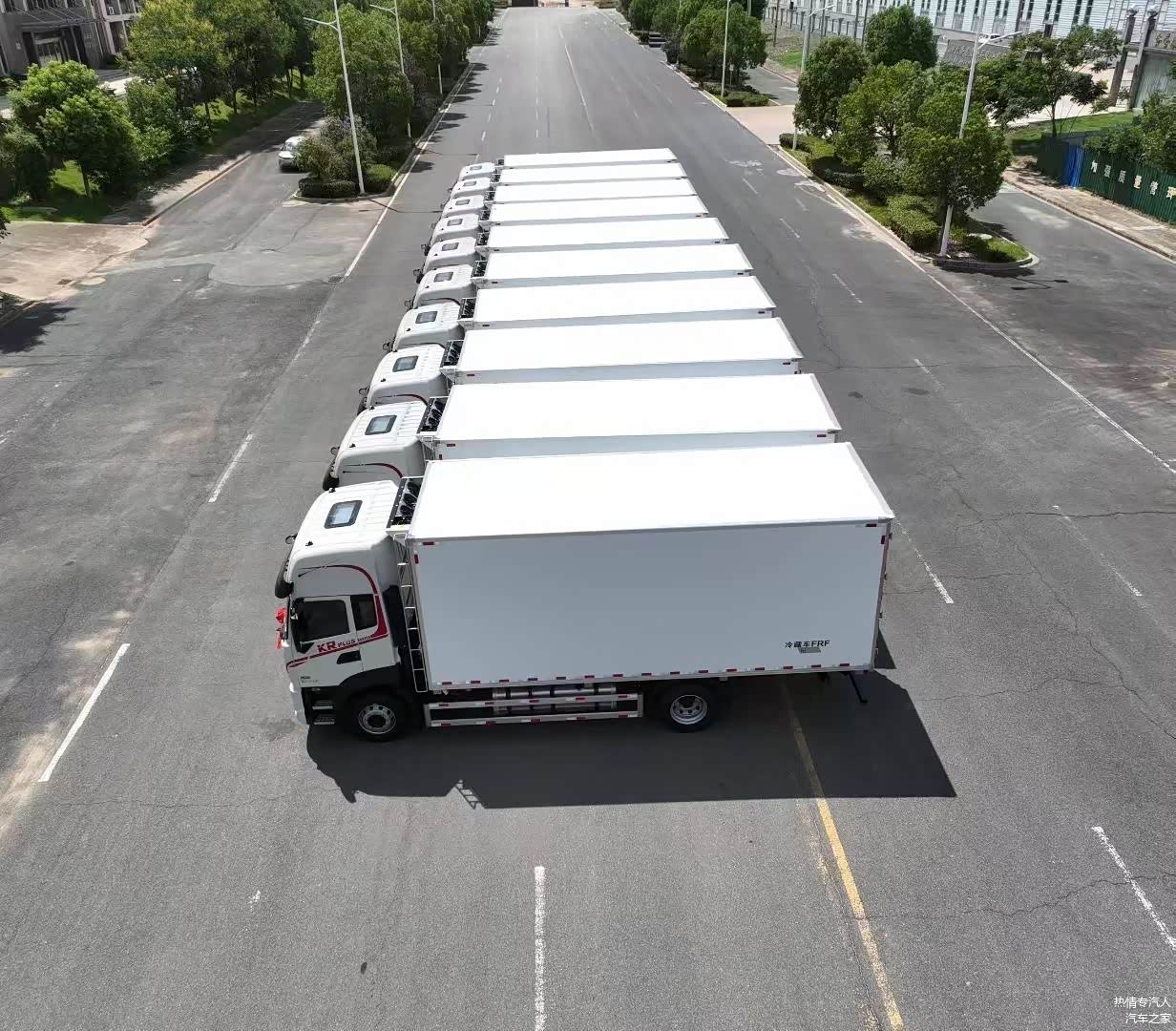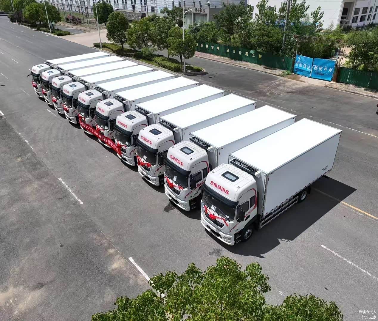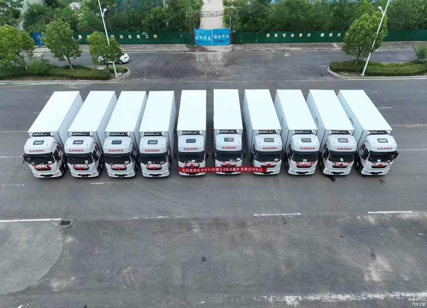 10台东风天锦KR Plus 6.8米冷藏车批量发车