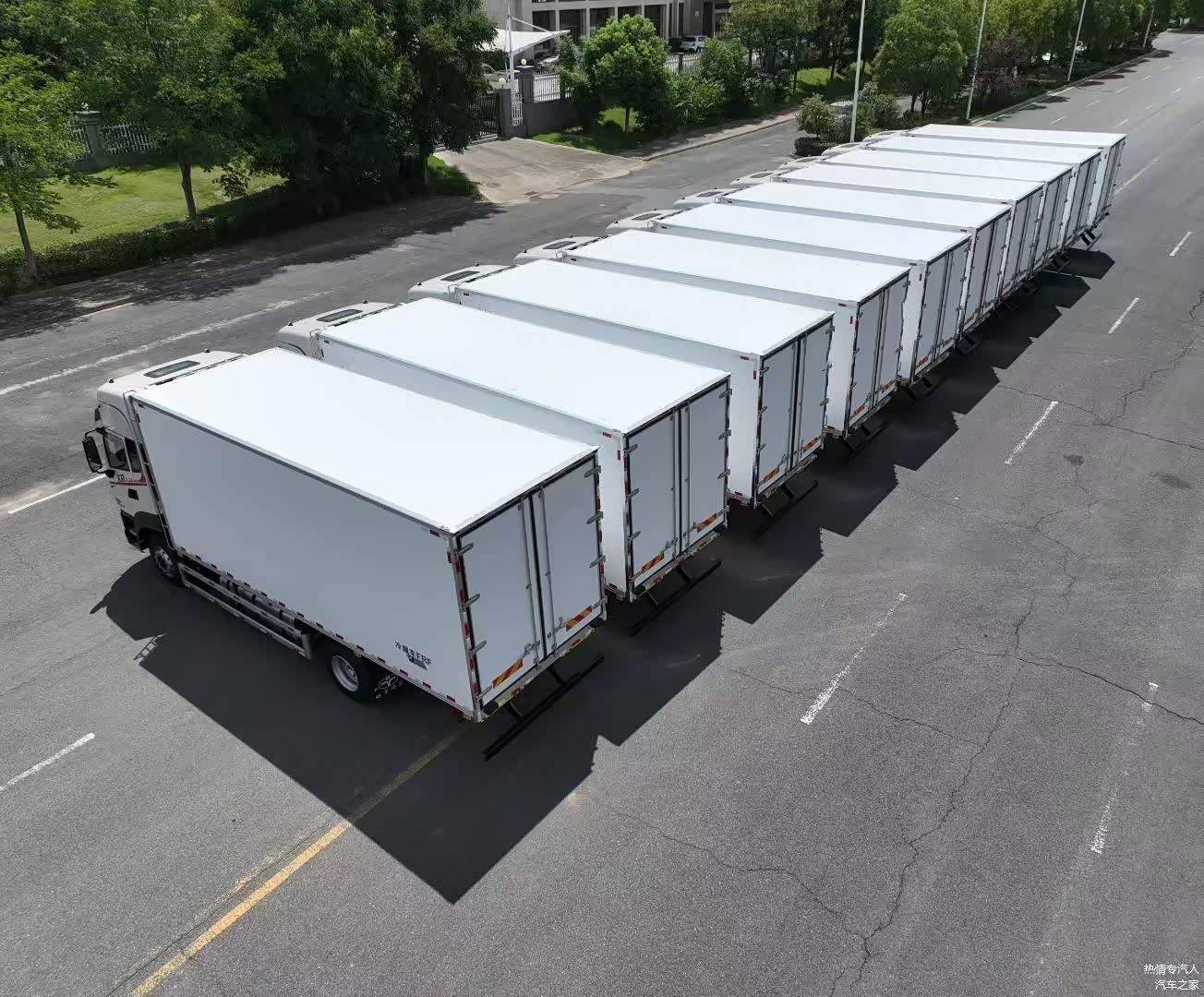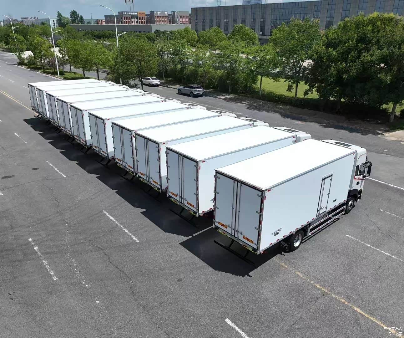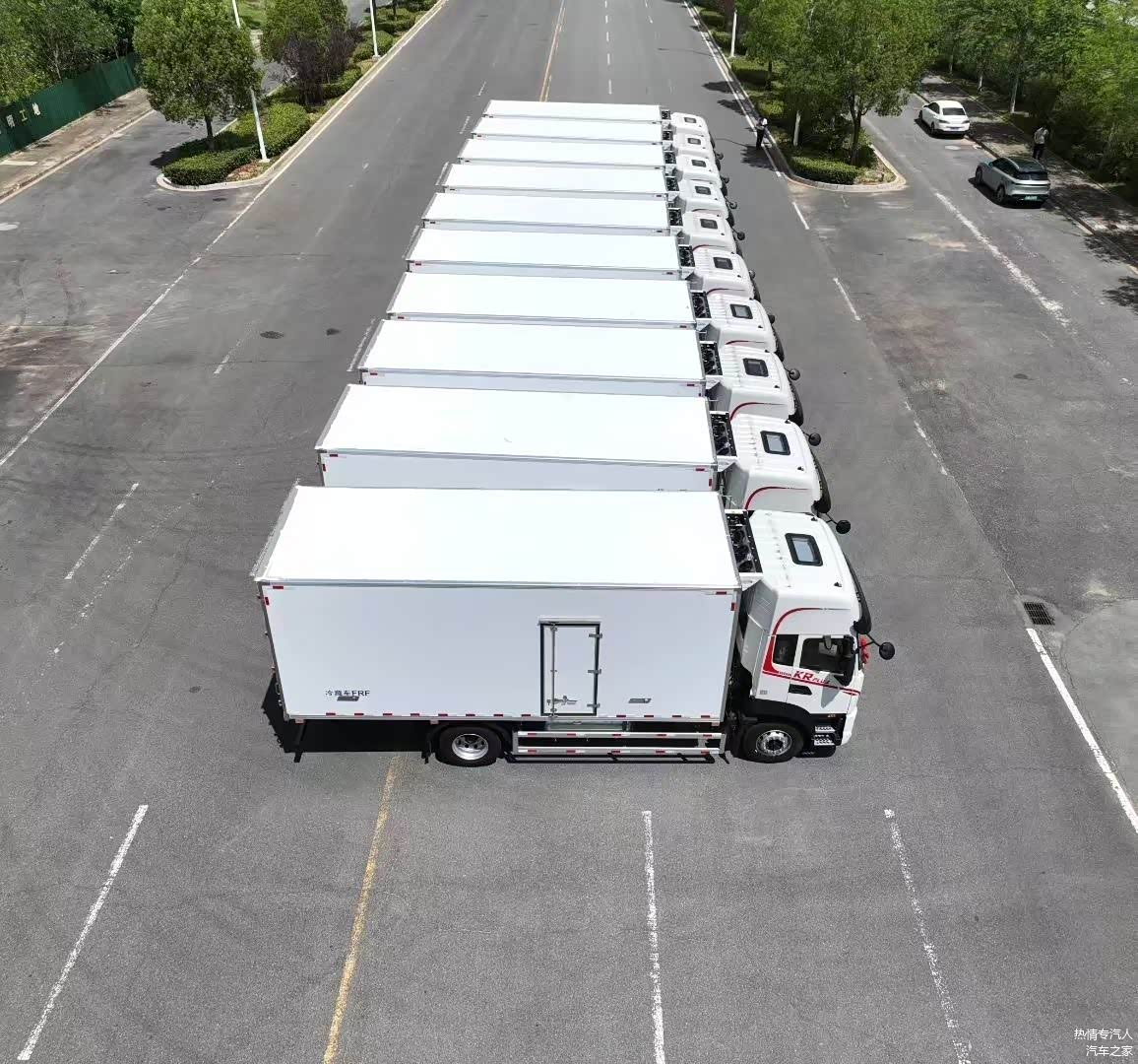 10台东风天锦KR Plus 6.8米冷藏车批量发车