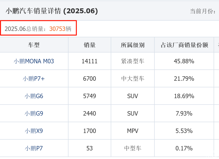 从6月数据来看,小鹏G6销量5749辆,G9销量2440辆,G7刚7月初上市,与特斯拉Model Y和小米YU7形成错位竞争。