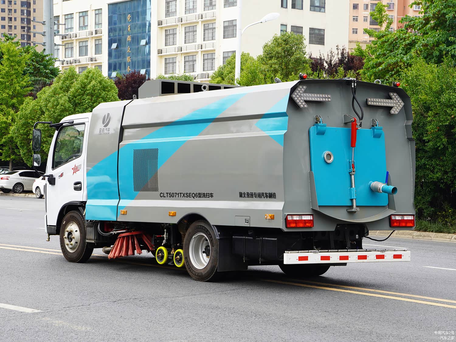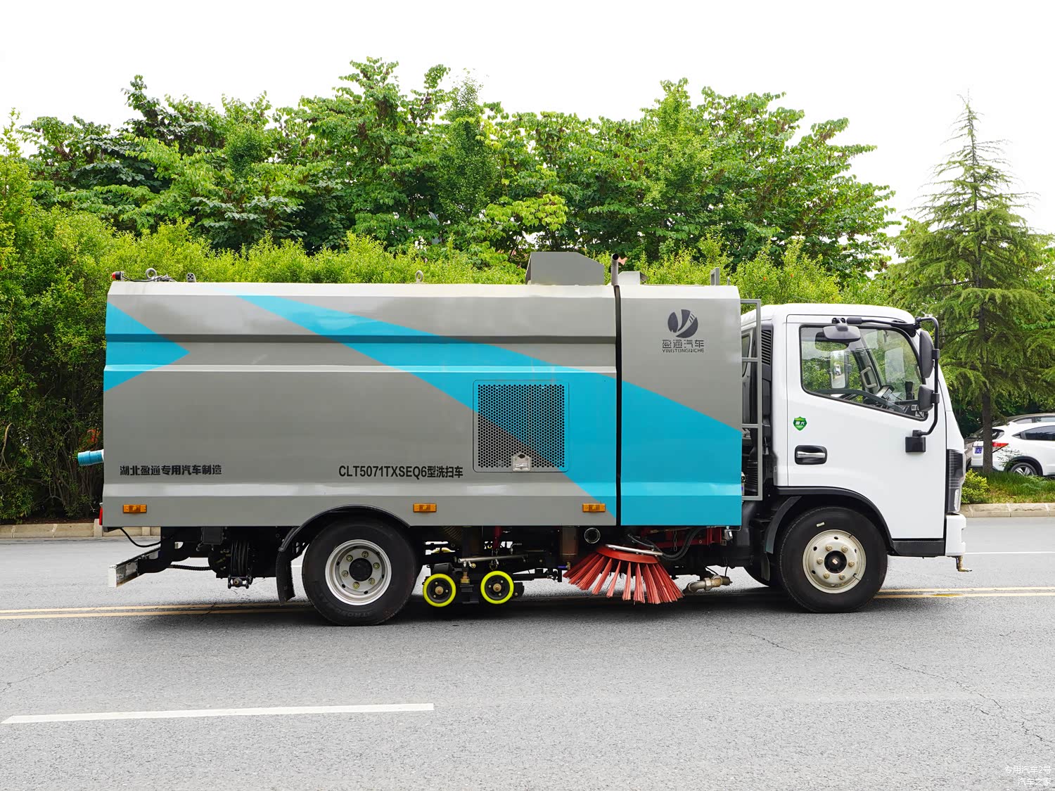 - 性能特点:具有路面清扫、洗扫、路沿和路沿石立面洗刷、低压冲洗和喷雾降尘等多种功能。可通过驾驶室左下方的档位选择 “强洗” 和 “正常” 模式。左右立扫可独立控制,有多种主作业模式和辅助作业模式可选,一次作业洗扫效率达 98% 以上。