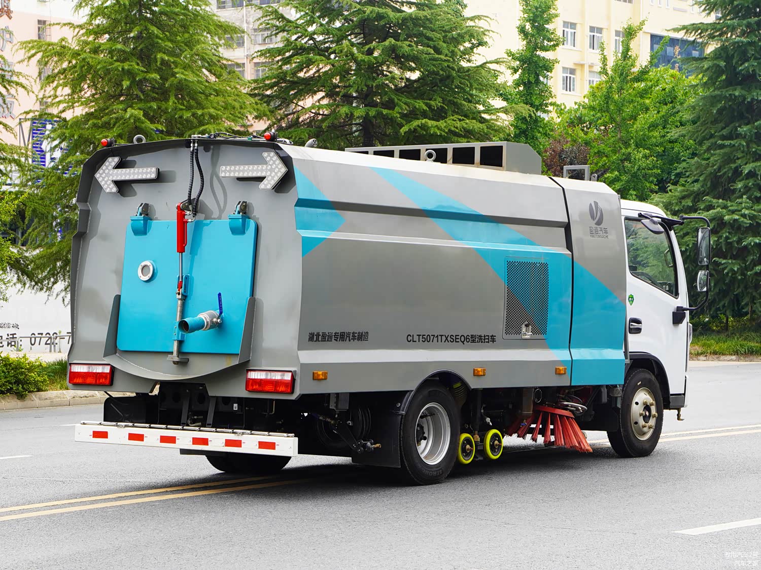 - 水箱和垃圾箱:清水箱容积一般为 1.5 立方米,内置水位显示,内部做防腐、防锈、防毒处理。垃圾箱采用双层内胆不锈钢结构,容积约 4 立方米,内部加装过滤网板和喷雾压尘装置,厢体采用倾翻卸料方式。