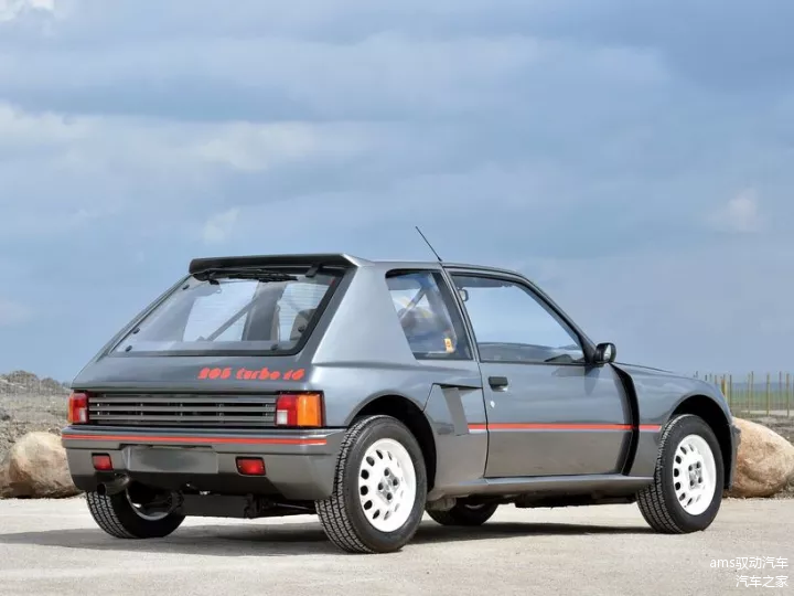 根据B组拉力赛规则,参赛车辆必须基于当前量产的民用车打造。为了让205 T16能够参加B组拉力赛,标致生产了至少200辆民用版205 T16。虽然民用版197马力的动力不及赛车的一半,但仍旧继承了轻量的车重以及中置四驱的布局,也许这就是扮猪吃老虎小钢炮的开端。