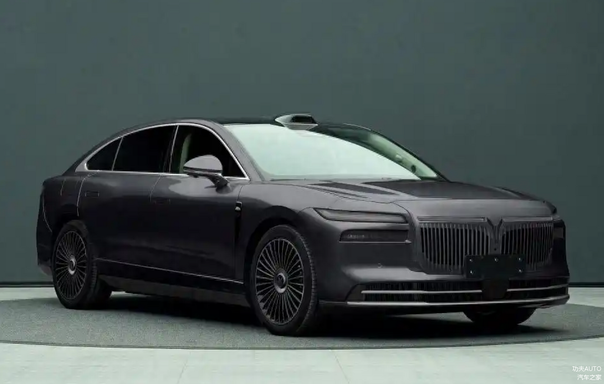 新车的特点极其明显,前脸造型就是问界M9和问界M8的家族式风格,格栅是圆润的封闭式设计,大灯组采用熏黑处理,贯穿式日行灯拉伸前脸横向视觉宽度,肌肉感满满。