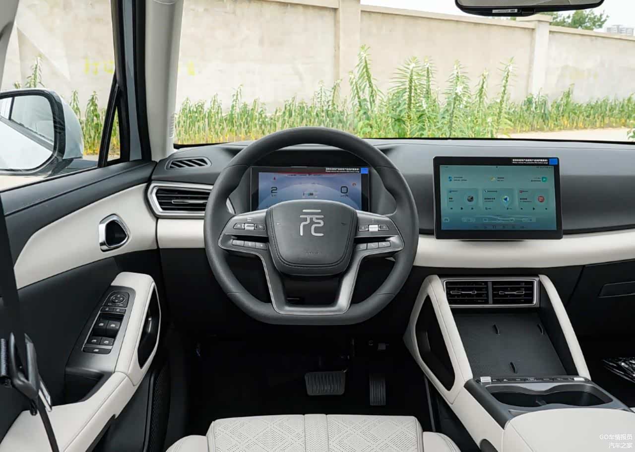 坦率地讲,现在电动车的中控台造型都大同小异,简而言之就是“一大一小两块屏,实体按键大清零”。中控屏都采用悬浮式的设计,元UP尺寸为10.1英寸,星愿为14.6英寸。