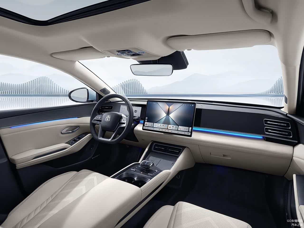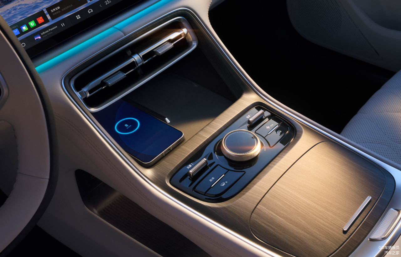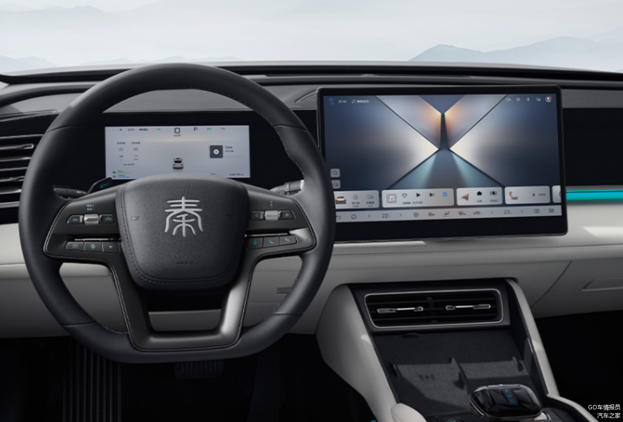 现在新能源车的中控台造型都大同小异,多采用简洁的横向线条,然后是全液晶仪表和大尺寸中控屏的组合。装潢的细节有点不同,银河A7采用大面积皮革包裹和金属质感饰条的组合,秦L DM-i则采用大面积的高光饰板搭配皮革包裹。中控屏尺寸方面,银河A7的低配和次低配为14.6英寸,其他配置为15.4英寸,秦L DM-i有一个高配是15.6英寸,其余均为12.8英寸。