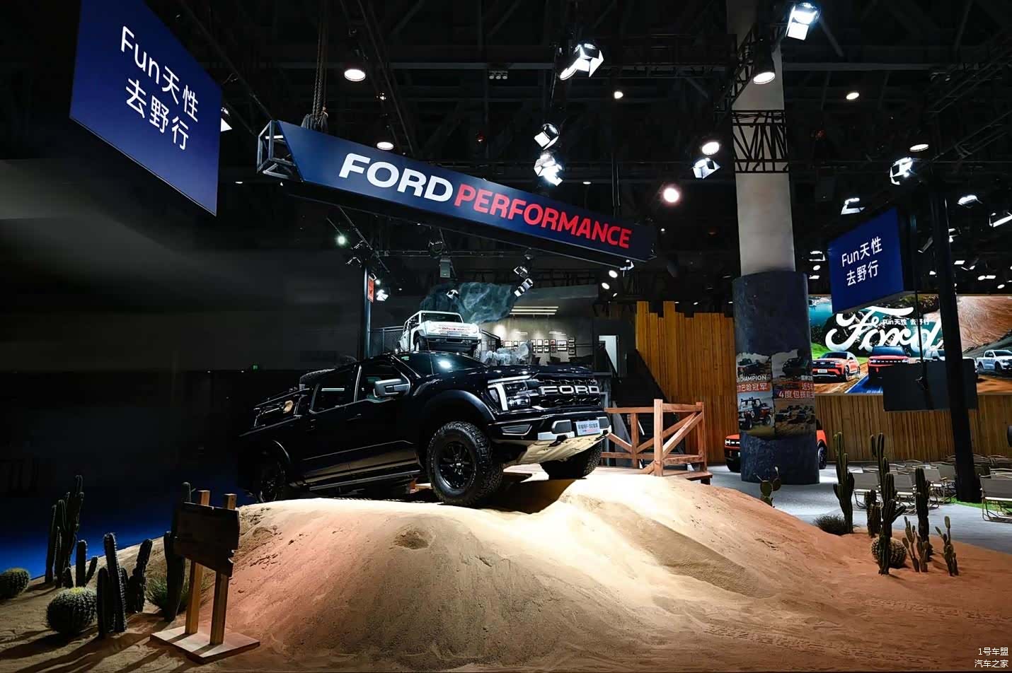 新福特F-150猛禽领衔的“赛级野”区域,诠释“极限性能”的真谛。作为超性能越野皮卡的标杆,新F-150猛禽搭载7种驾驶模式TMS地形管理系统、越野转弯辅助、Trail Control蠕行定速巡航等专属科技,展台通过模拟沙漠、戈壁等赛级场景,展现其“征服全地形”的实力;多功能后斗的改装展示,更让观众看到“赛级野”之外的多元可能——无论是装载越野装备,还是搭建户外补给站,皆能轻松应对。