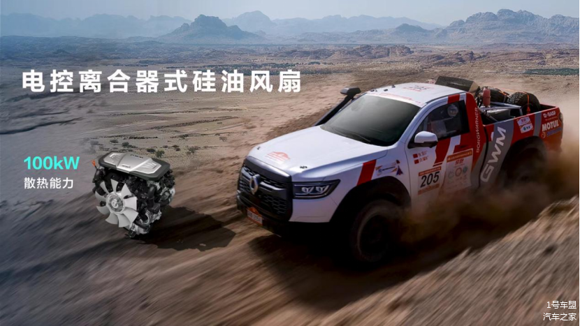 为应对极限场景,V6 火炮还标配博格华纳电控硅油风扇,系统散热能力达100kW,哪怕是在40℃高温下连续1小时冲沙,发动机水温也能稳定在正常区间,就特别适合玩极限玩沙、高强度赛事或者大角度爬坡等等的高强度越野。关键是风扇运转时的“低吼”声,简直是越野玩家的“情绪BGM”,非常的热血,越野这样开才痛快。