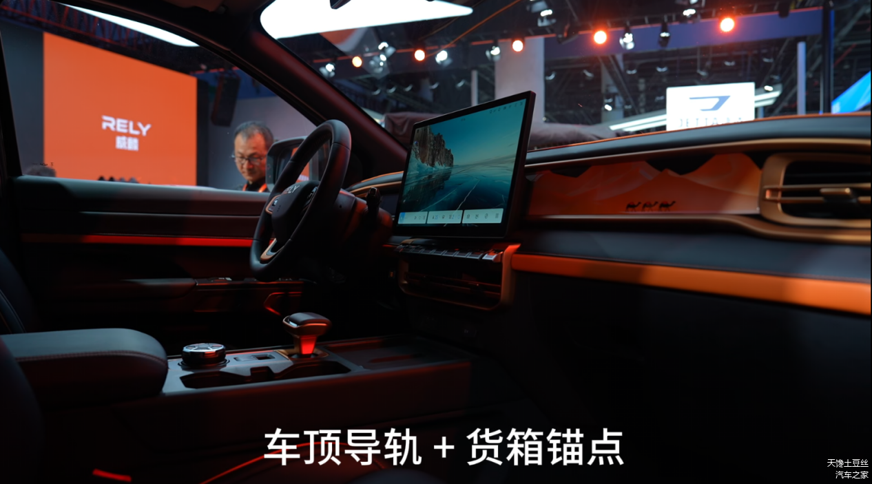 五元汽混架构:基于奇瑞控股鲲鹏超能混动 C-DMO 架构,搭载2.0T 纵置汽油发动机、2 挡纵置混动箱及后轮双矢量电机,系统功率515kW,轮端扭矩超 10000N.m,加速性能全面领先同级皮卡。“威麟开天平台”数字底盘,搭载全球首创 CTC 一体化车架、双腔空气弹簧 + CDC电磁减振器,适合休闲露营、长途自驾等泛越野场景,动力与经济性兼顾。