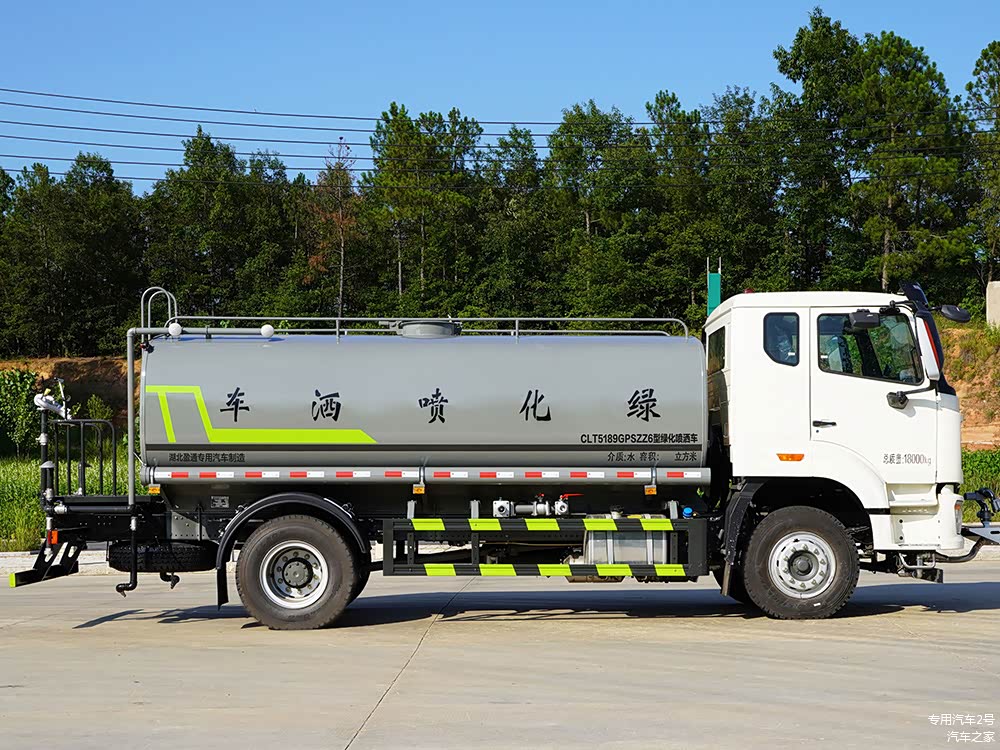 - 喷洒装置:标配前冲、后洒、侧喷、绿化洒水炮,后置式工作平台上的高压水炮可 360° 旋转,柱状最大射程可达 28 米及以上,雾状最大射程 14 米左右,能调成直冲状、大雨、中雨、小雨、毛毛雨等不同状态。部分车型还可选装 30-40 型喷雾机组。