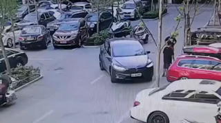 特斯拉Model X直接就撞上去了,那人估计不中了!