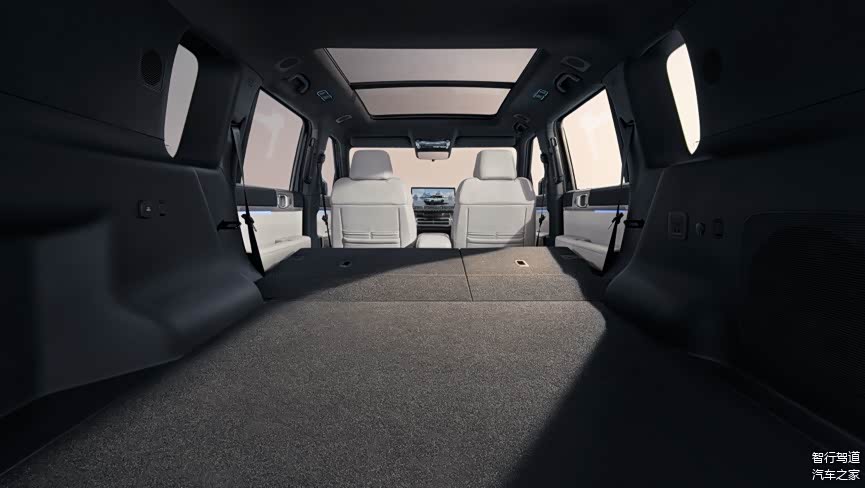 空间表现上,该车乘员舱有效长度超3.3米,官方数据显示其"得房率"(车内有效空间占比)达70.9%。后备厢常规容积近千升,将二排座椅放倒后可扩展至1880升储物空间,车内共设计47处储物区域。