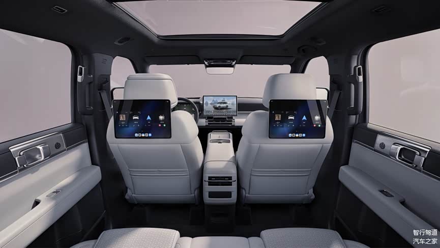 内饰采用多屏交互设计,包含仪表盘、中控屏、后排娱乐屏等共7个屏幕,配备-6℃至50℃可调的智能冷暖冰箱。