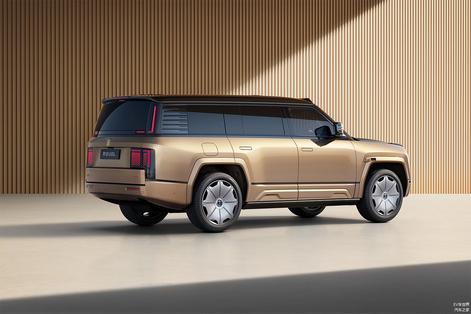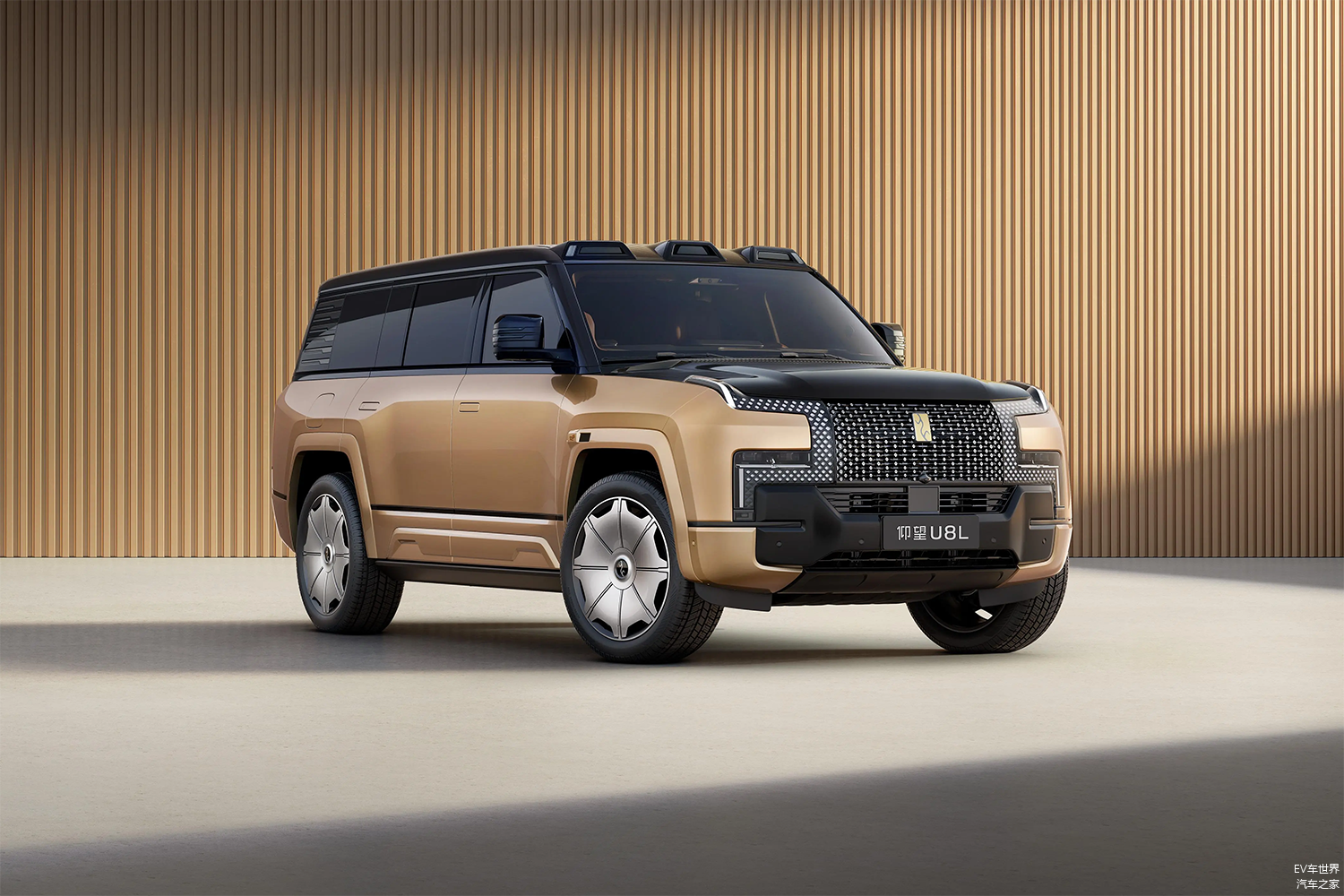 仰望U8L的外观沿用了U8的整体设计语言,前脸延续了“鼎”为灵感的设计语言,前后车标均由24K黄金打造。此外新车还推出曜石黑配日珥金全新车色。