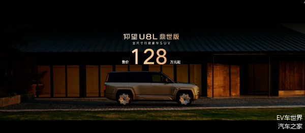 9月12日,仰望U8L鼎世版正式上市,售价128万元。仰望官方还宣布9月12日至10月15日支付定金有多重上市限时权益可享。