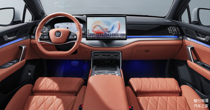内饰提供黑灰、棕白两种主流配色方案,搭载智能座舱DiLink 100,15.6英寸2.5K分辨率自适应旋转中控屏成为视觉中心,可根据应用场景自动切换横竖屏显示,搭配12.3英寸全液晶仪表盘,形成对称式中控台设计。车机系统搭载智能网联系统,支持连续语音交互、整车OTA升级和多屏互动功能。车内门板扶手区域采用软质材料包覆。