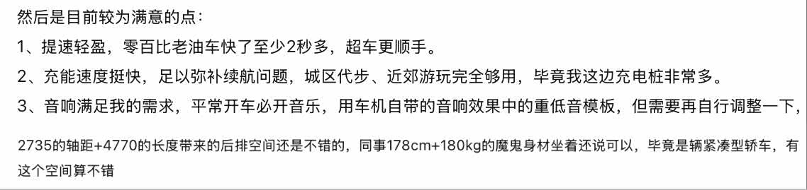 对于城市用户来说,由于用不上那么强的动力,同时也不担心补能问题,动力和续航其实够用就行,底盘质感反而才是他们更看重的。