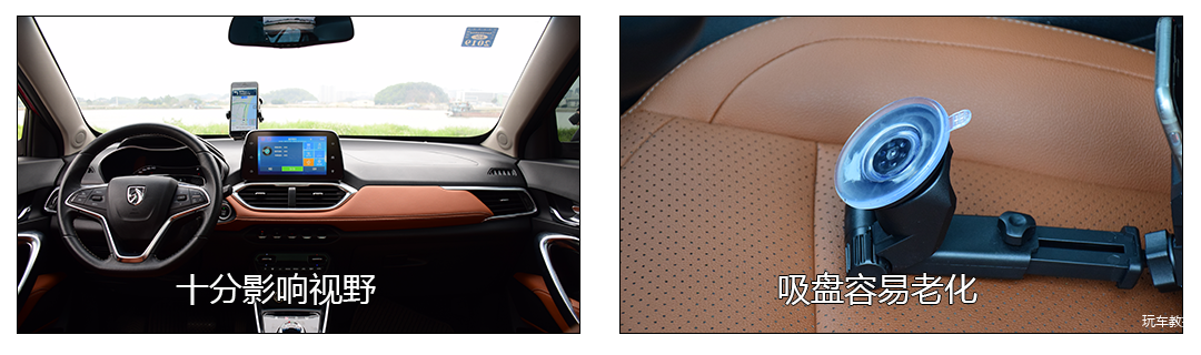 恕我直言,这款支架我最不喜欢,它最大的弊端就是遮挡视野,无论是放在方向盘左边还是右边,对视野的影响都是十分大的,要知道视野就是安全啊!而且它还有一个问题,就是吸盘容易老化,这也是吸盘普遍的问题;你问我咋知道的?才一年多我们公司的p-box加速仪的吸盘已经挂不稳了这种事我会随便乱说?并且这款支架旋钮机构众多,调节起来还真有点麻烦。