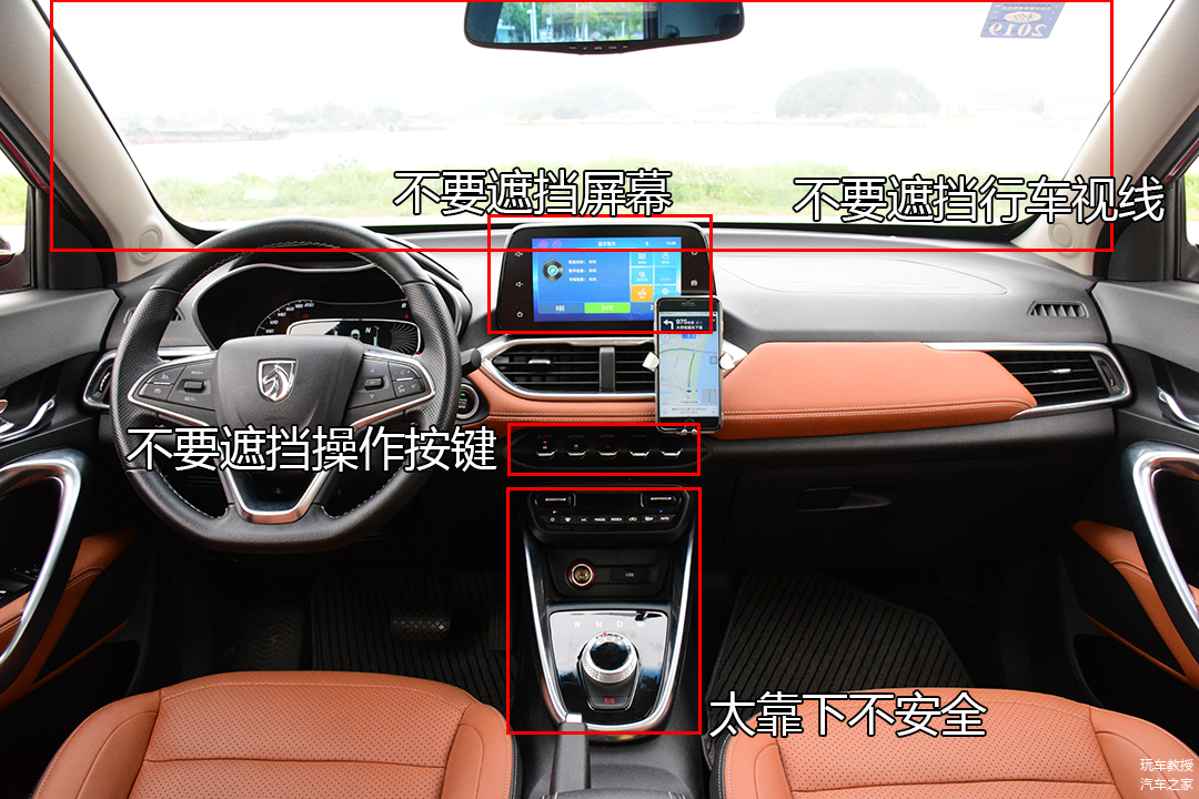 1、尽量摆放在接近视平线的位置,但不要遮挡了行车视野