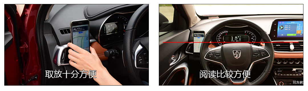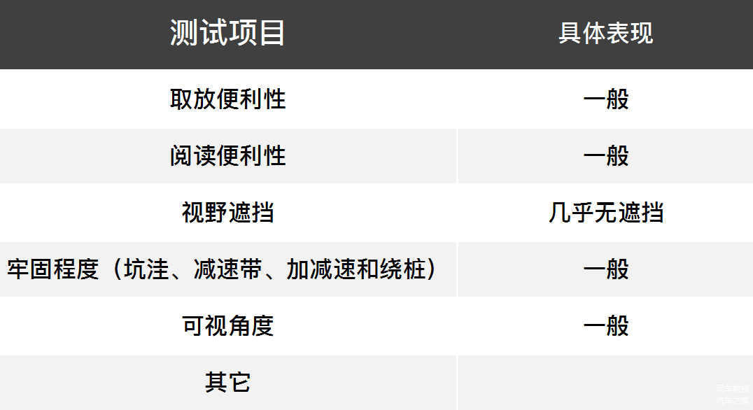 备注:每款支架我们都选择最适合我们的展示车宝骏510的安装位置,从拿取便利性、阅读便利性、视野遮挡、牢固程度、可视角度和其它因素来综合考量各款支架,给出推荐指数。其中牢固程度通过减速带测试和绕桩测试、加减速以及坑洼路段测试。