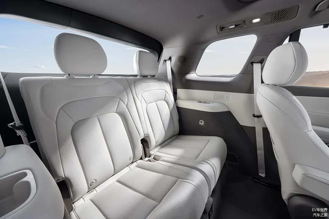 第三排座椅支持100mm独立前后滑移、电动靠背角度调节与座椅加热,并可通过第二排最大宽度277mm的中央过道轻松进出。