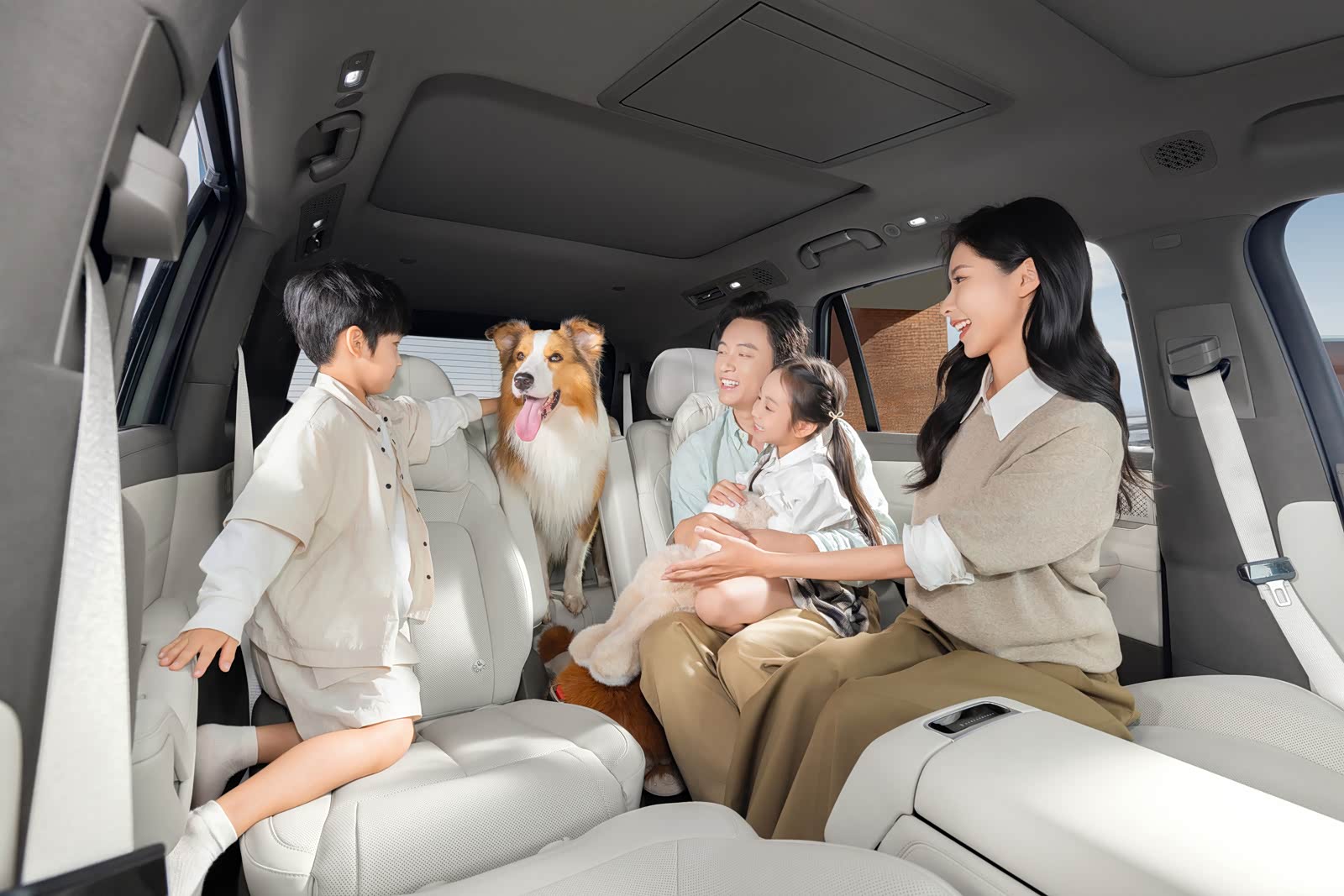 百变空间:能满足家里各种场景的需求。不管是腿部、肩部,还是头部的空间,都比同级别其他品牌的产品要好。第三排的座椅又宽又软,还能调节角度,前后能移动100毫米,有加热功能,还有独立的空调出风口。所有车型都标配电动座椅,能有4+N种灵活的组合方式;全车一共有49个放东西的地方,后备箱的容积能扩大到1128升,还配了个51升的隐藏式多功能暗格。