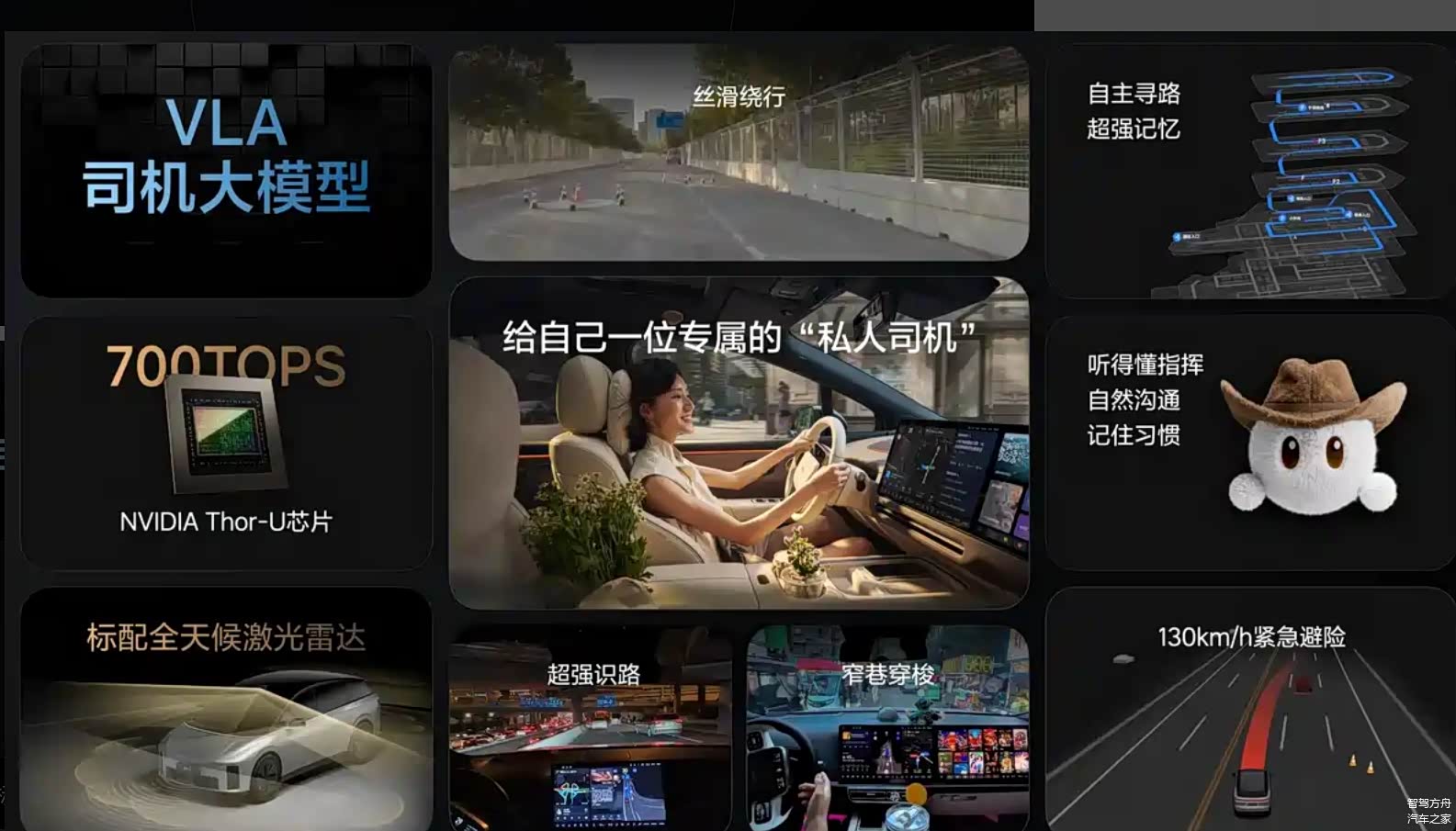 理想i6全系标配AD Max智能驾驶硬件套装,以车顶单激光雷达为核心,搭配12颗高清摄像头、5颗毫米波雷达及12颗超声波雷达,构建360°无死角感知网络。计算平台采用双Orin-X 芯片,总算力达 508TOPS,配合高通8295P芯片协同处理,为端到端大模型运行提供充足算力支撑。