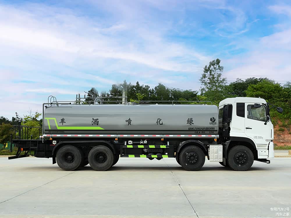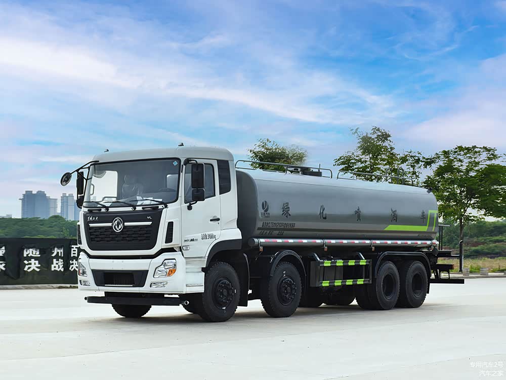 作为东风商用车体系下的经典重卡平台,天龙前四后八底盘以 “耐用性强、动力储备充足” 为核心,完全适配大容积洒水车的重载需求:
