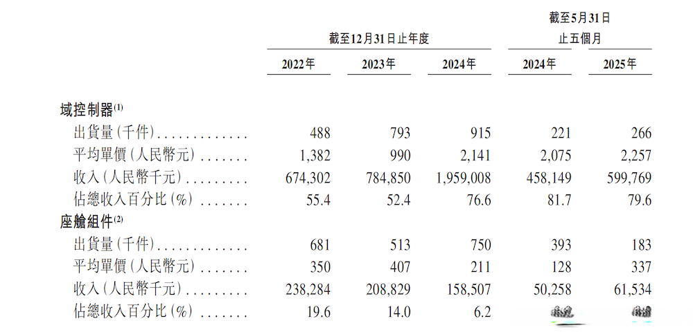 出货量方面,于往绩记录期间,博泰车联共售出约460万台智能座舱产品,域控制器出货量由2022年的48.8万台增长至2024年的91.5万台,复合年增长率为36.9%,今年前5个月其出货量为26.6万台,同比增长20.4%。