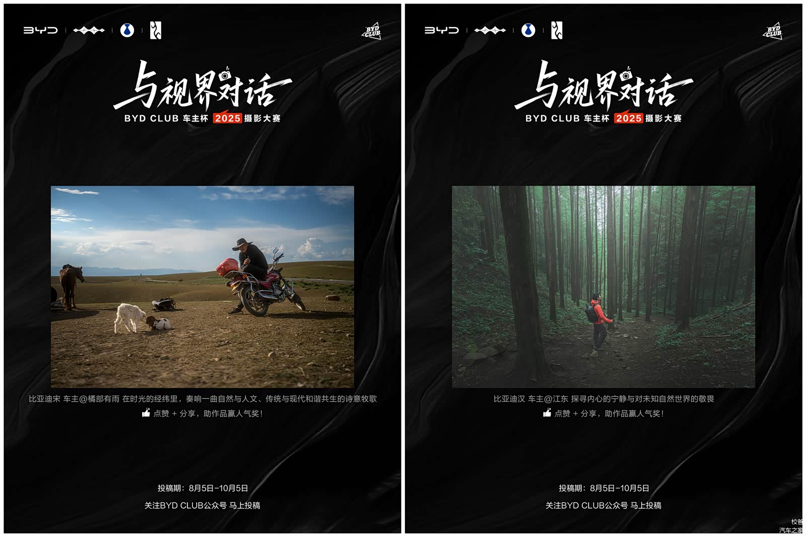 在BYD CLUB车主杯·2025摄影大赛的赛程过半之际,翻阅着已涌现的数百幅优秀作品,我深刻感受到这场赛事的独特魅力——它不仅是镜头与光影的对话,更是一场关于自由、热爱与联结的集体创作。