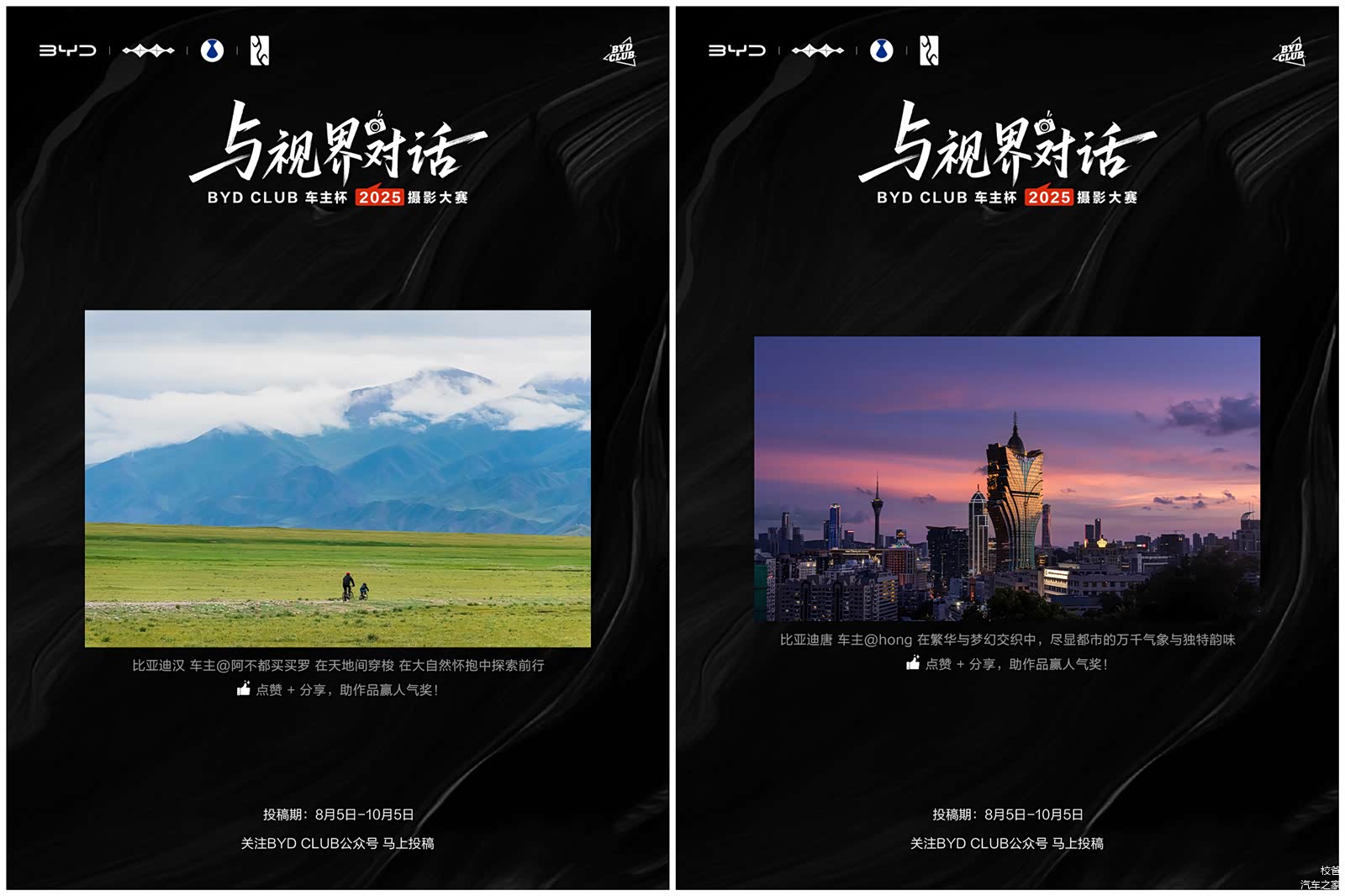 “与视界对话”不仅是主题,更是一种生活态度:用车轮丈量世界,用镜头收藏情感。这些真实、有爱、有故事的影像,正诠释着比亚迪与用户之间超越品牌的共鸣——我们不仅是同行者,更是生活的共创者。