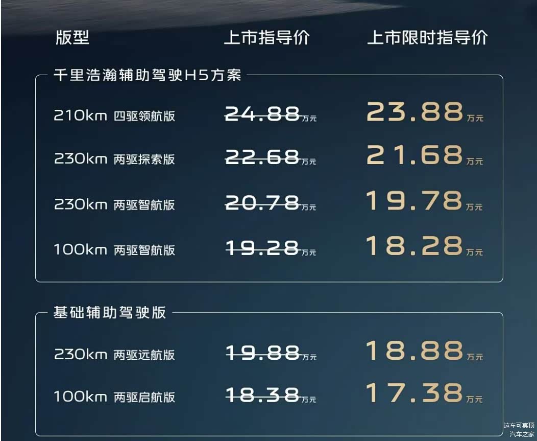 发布会上曾多次强调,10月底,风云T11正式上市,价格还将会有惊喜。个人认为这个惊喜,1万块钱起步,而且像是冰箱等配置,中配也会给免费选装,或者给点儿选装权益。总体来说,价值1.5万的让利,应该是跑不了的。