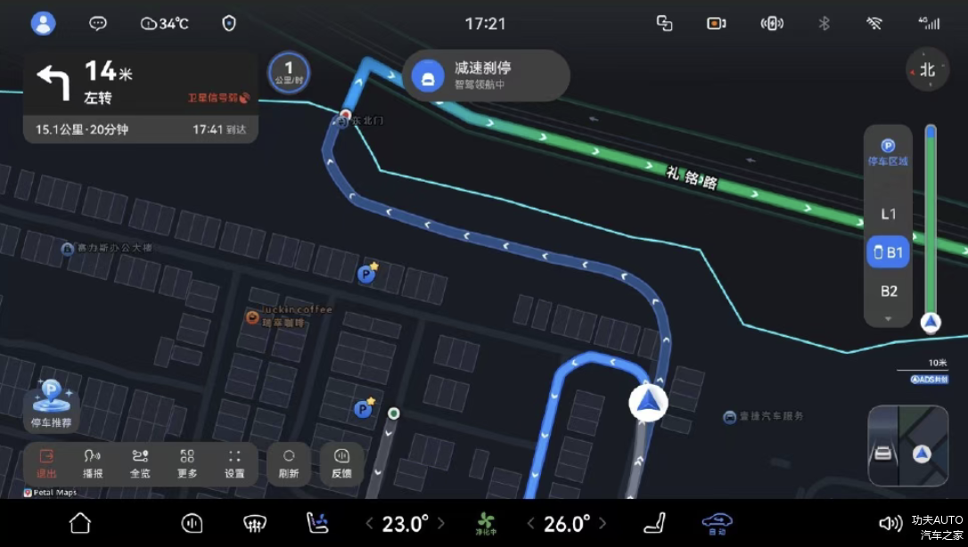 简单举例场景,从上车出发开始,在车位上就可以一键开启“领航辅助”,通过覆盖全程的人车共驾全面提升出行安全与体验。在高速上遇到加塞车,不等你反应,方向盘已经温柔避让;城区里过路口,能自动识别红绿灯,连“鬼探头”都能提前预判。