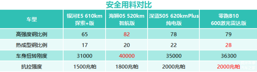 当然,不仅是配置。在用户感知度更低的车身安全用料上,零跑B10和刚上市不久的比亚迪海狮05EV分别拥有两项成绩的领先,而如果加上零跑B10所搭载的只有几十万的高端车型才有的高速爆胎控制系统的话,那在这个领域,我们依旧可以认为,这就是零跑汽车,在面对这个级别众多的传统大厂的时候,所给出的质价比和企业的诚意。