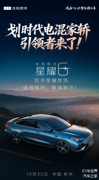 近日,吉利银河发布预告称旗下星耀6将于10月30日正式上市,新车已于9月26日开启预售,共推出5款车型,预售价区间为8.58-11.88万元。