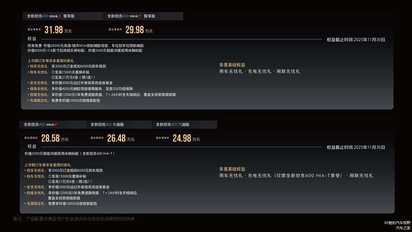 新车共推出五款车型,汽油版售价 24.98 万元,柴油版 26.48 万元,Hi4-T 版 28.58 万元,Hi4-T 智享版 29.98 万元,Hi4-Z 智享版 31.98 万元,即刻下单可享多重购车优惠,上市当日便完成首位车主交付,长城汽车董事长魏建军还带领 AG 超玩会梦泪参观了造车设施,近距离体验新车性能。