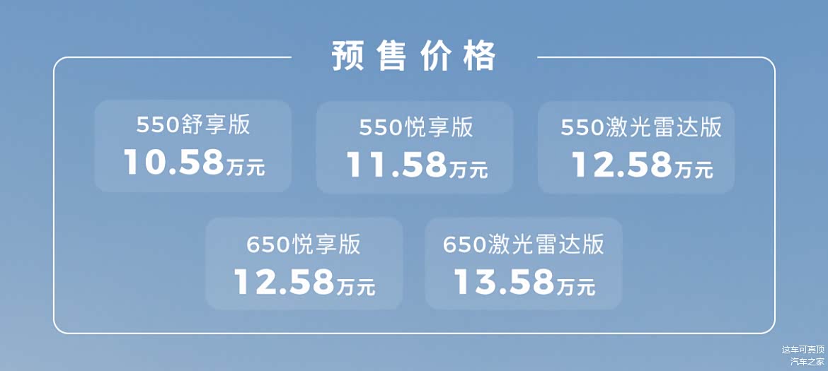好,那我们再看一下零跑Lafa 5的预售价,10.58万~13.18万。你们知道零跑B01当时上市前的预售价是多少吗?是10.58万~13.58万,起步价格和零跑Lafa5一模一样,长续航版还贵了4000元,你可以理解为,这就是从宁德时代换成二线电池,补给你的差价。