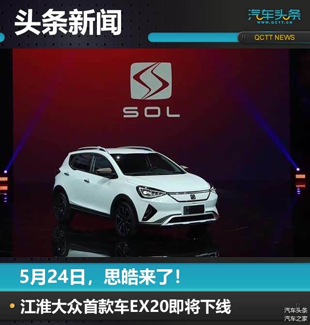在今年四月的北京车展前夕,江淮大众发布其全新品牌——SOL(思皓),并发布了旗下首款A0级SUV车型EX20。