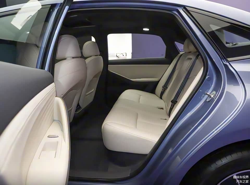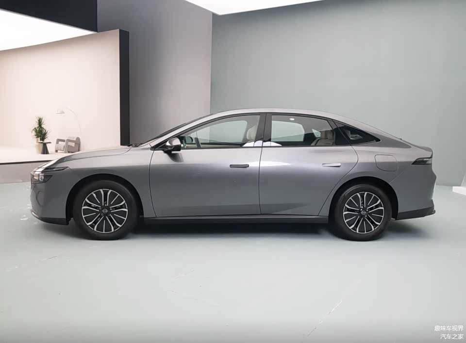 车身侧面采用流畅的溜背造型,从车头延伸至车尾的腰线让4831毫米的车长更显修长,17英寸多辐式轮毂采用银灰双色设计,搭配隐藏式门把手,既提升颜值又优化风阻。车尾部分,贯穿式LED尾灯与头灯形成视觉联动,灯组内部的点阵式光源在夜间点亮时如同霓虹光带,下方的扩散器装饰则为整车增添了一丝运动的美感。
