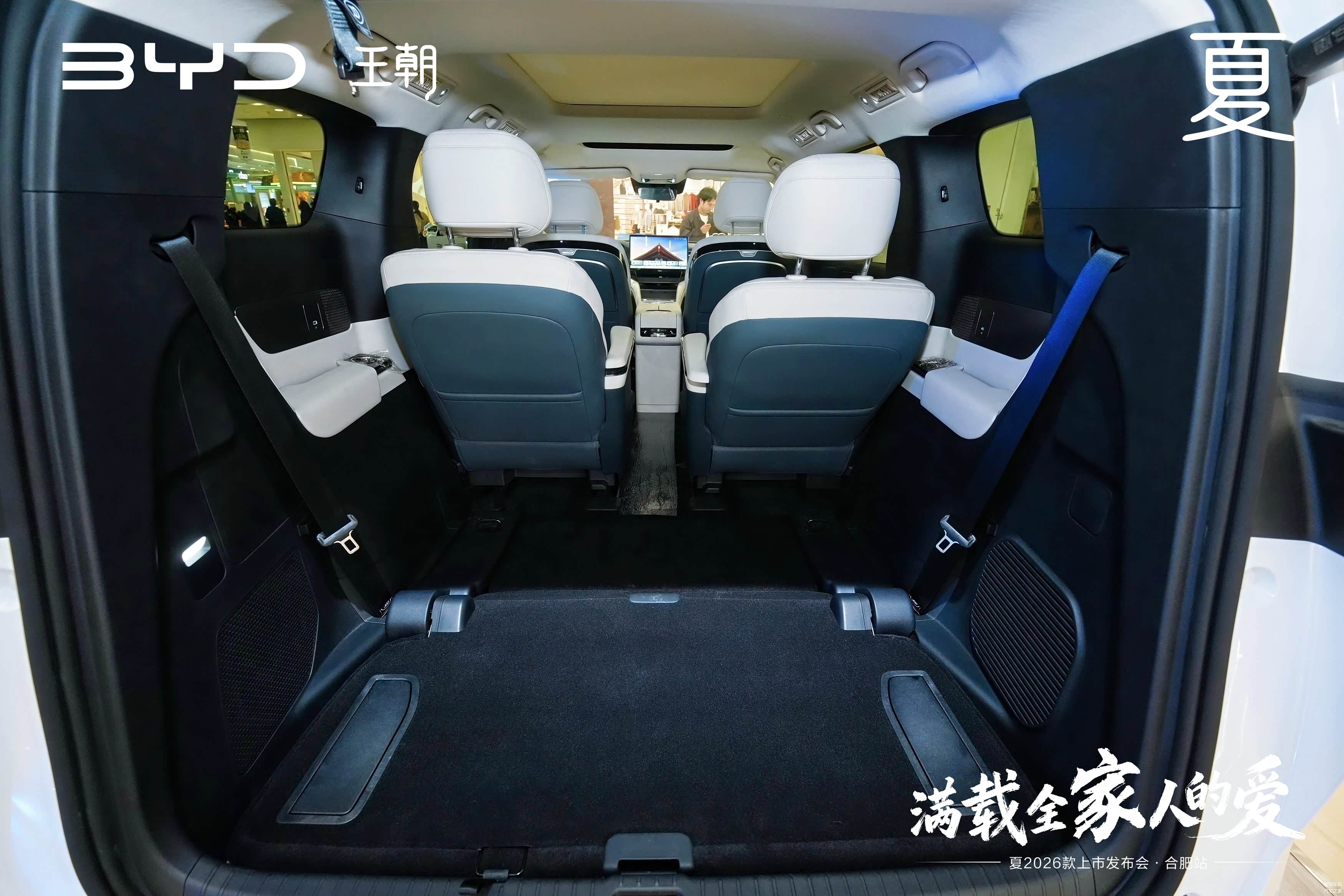 三排同权的车,长什么样?超过5米的车长和3米以上的轴距,让2026款夏实现了真正的“三排同权”:每个座位都是VIP。更绝的是,第三排座椅一键电动折叠后,秒变2036L的超大平整空间。婴儿车、滑板车、露营装备统统能装下,简直就是为“四脚吞金兽”家庭量身定制的收纳神器。
