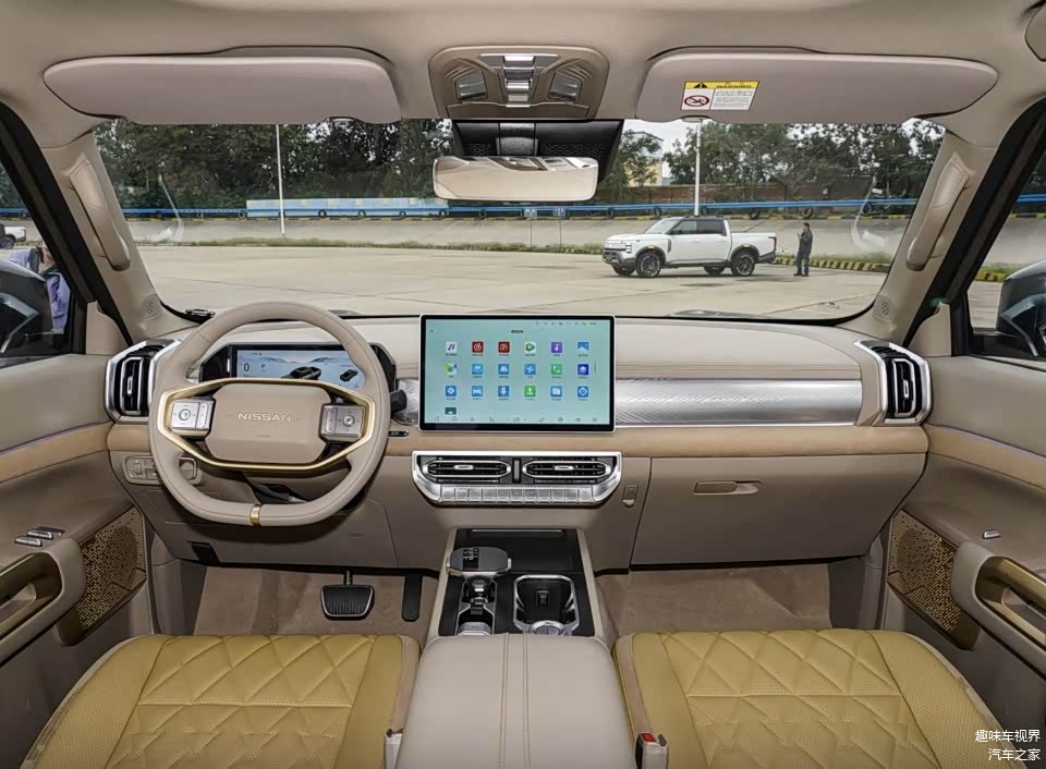 进入车内,豪华感扑面而来,彻底打破皮卡“工具车”的刻板印象。大面积搪塑工艺、皮革与翻毛皮材质包裹,搭配实木与铝制装饰,质感直逼豪华SUV。10英寸液晶仪表与14.6英寸中控大屏的组合,内置丰富娱乐应用,操作流畅度位居皮卡前列。法国劲浪12扬声器音响与车内氛围灯的搭配,配合顶级NVH隔音设计,打造出移动的“私人歌剧院”。前排真皮座椅支持12向电动调节、加热、通风及8点式按摩功能,后排座椅靠背角度可调且地板纯平,让全车乘客都能享受“日产大沙发”的舒适体验。