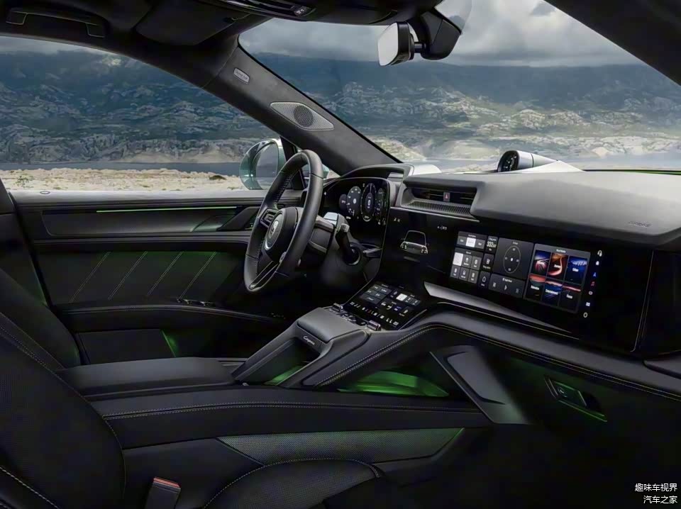 内饰的科技感与豪华感实现双重突破,核心亮点在于由多块屏幕组成的智能交互系统。中控台配备独特的Flow Display曲面屏,配合14.25英寸OLED数字仪表盘、87英寸抬头显示以及14.9英寸副驾驶屏幕,构建起四屏联动的全场景交互矩阵。车内大面积采用Alcantara材质与真皮包裹,搭配碳纤维饰板与蓝色缝线点缀,既保留保时捷的运动质感,又通过氛围灯系统营造出温馨舒适的座舱氛围。