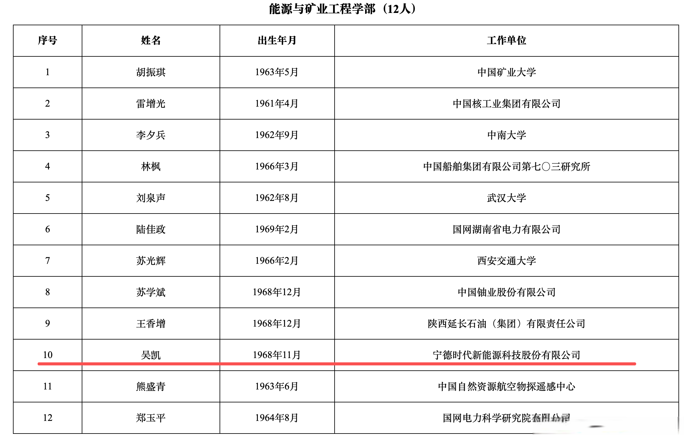 以及入选能源与矿业工程学部的宁德时代首席科学家吴凯。