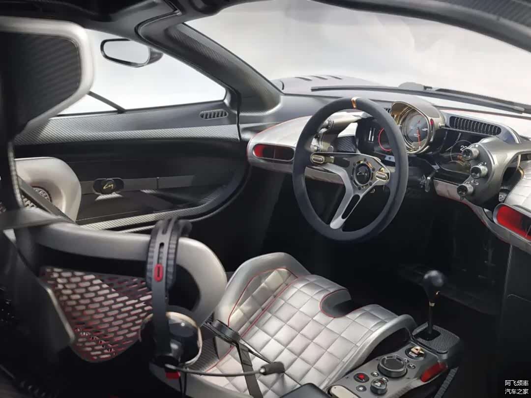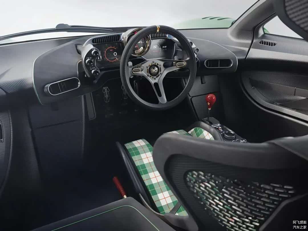 座舱设计延续了轻量化理念,裸露的抛光碳纤维材质被大量运用,中控台、手刹与踏板均为定制化打造,不仅减轻了重量,更营造出强烈的运动氛围。